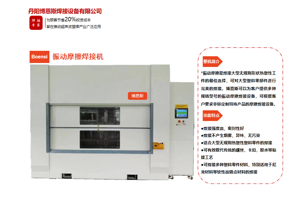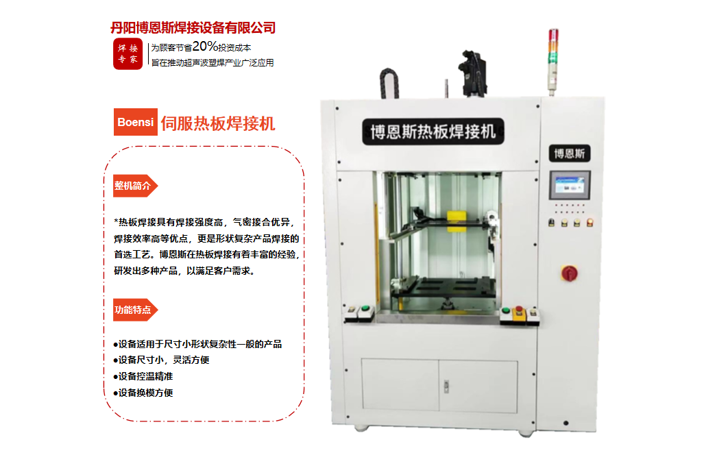 丹陽博恩斯焊接設備有限公司是塑料焊接領(lǐng)域集研發(fā)設計、生產(chǎn)制造、銷售服務為一體的企業(yè)。公司自成立以來堅持“以人為本”的理念,組織了一支強大的技術(shù)研發(fā)團隊,攜多年來積累的豐富經(jīng)驗,并結(jié)合國際先進塑料焊接技術(shù),根據(jù)市場需要,不斷開發(fā)具有核心競爭力的新產(chǎn)品。公司具有很強的非標機械研發(fā)、設計、生產(chǎn)能力,可為廣大客戶定制各類專用機械設備。公司設計生產(chǎn)的塑料焊接設備已廣泛應用于汽車、電子、家電、醫(yī)療器械、無紡布...